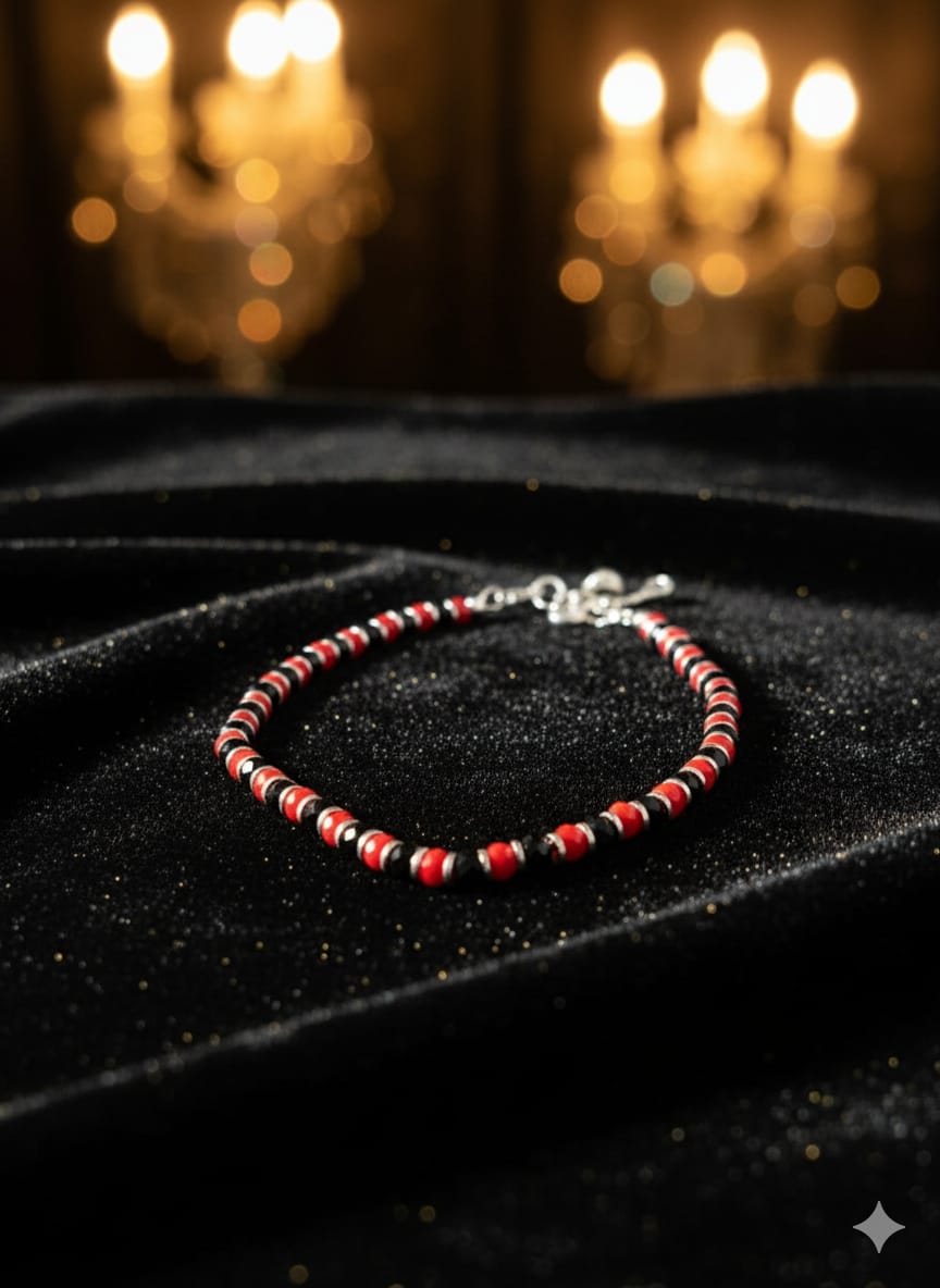 Minimal Red & Black Beaded Protection Bracelet β Adjustable Unisex Design