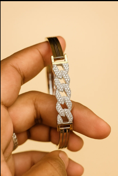 A unisex Italian cut 925 silver bracelet with gold-plated accents and a Cuban link design, blending bold luxury with everyday wearability.