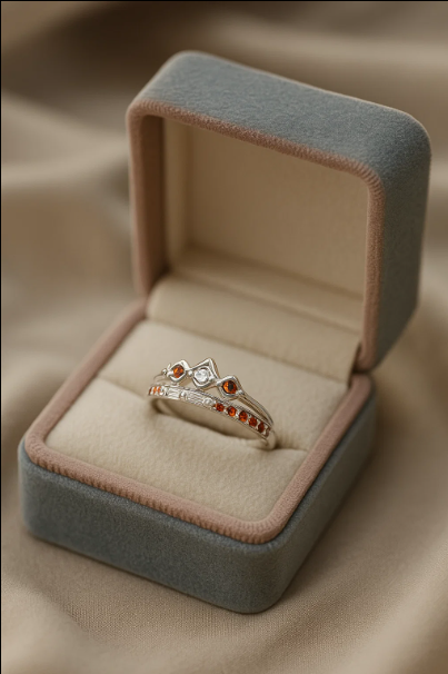 Royal crown ring in 925 silver featuring a blend of red-orange gemstones β elegant, powerful, and uniquely feminine.